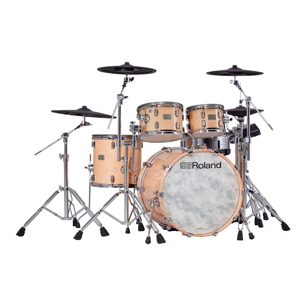 A VAD706 é equipada com as peles Mesh Head original Roland, mundialmente conhecida por sua tocabilidade e durabilidade. A caixa possui mesh head de 3 camadas, e os tons e o surdo vem com a pele tradicional de duas camadas, proporcionando um rebote personalizável, macio e silencioso, ideal para se adequar ao seu estilo de tocar. A superfície do bumbo foi projetada para que quando você toque no bumbo, o ar seja deslocado com o impacto do batedor do pedal, trazendo uma sensação legítima de bumbo acústico. Essa sensação natural se dá em todos os tambores que são construídos com madeira selecionada, com medidas, profundidade e montagem tradicional de um setup acústico.