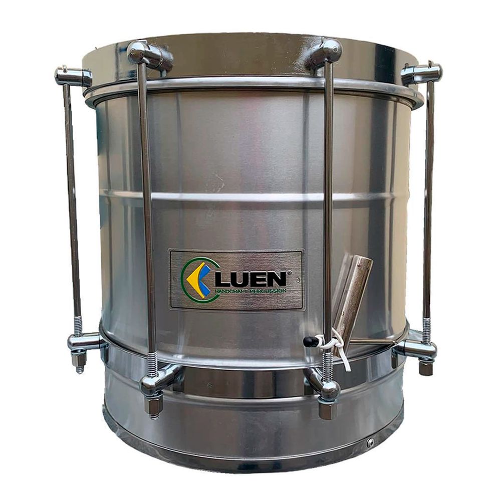 O Luen Brasil 3006 é uma cuíca com corpo de alumínio de 25 cm, pele animal de 8”, ferragens cromadas e 8 afinações.