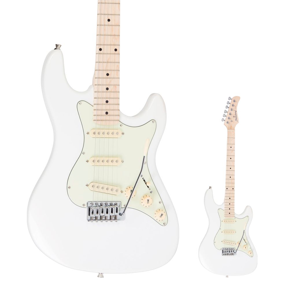A Strinberg STS150 MWH é uma Stratocaster na configuração Metallic White com escudo Mint Green, acabamento brilhante.