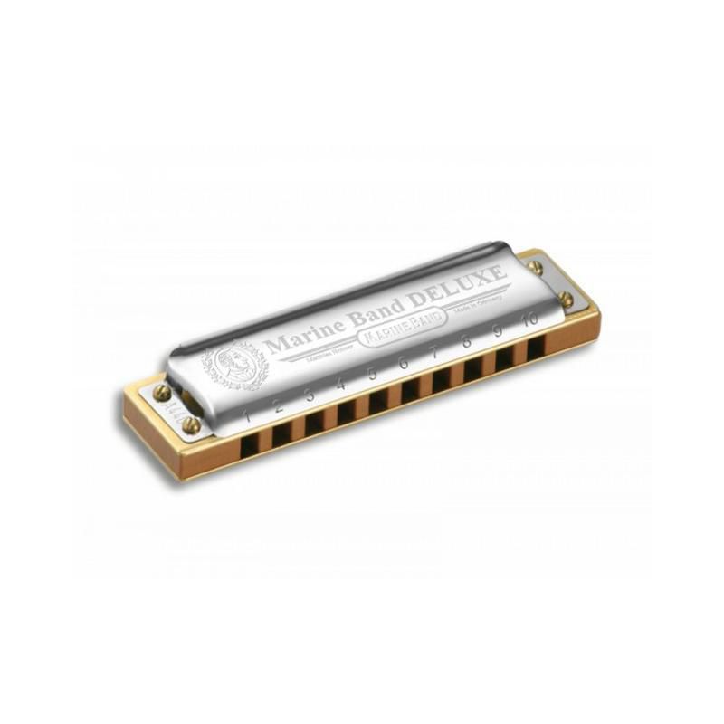 A Marine Band Deluxe incorpora uma variedade enorme de melhorias em relação ao modelo original que otimiza o manuseio e garante maior volume e respostas mais rápidas, ao mesmo tempo que mantém o som poderoso e encorpado típico das gaitas Hohner. É o instrumento ideal para tocar o estilo de Blues tradicional e também é adequada para técnicas de música mais modernas. Agora com corpo com revestimento triplo em madeira nobre e capa frontal com design mais moderno.